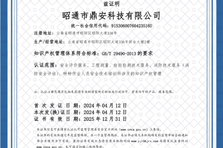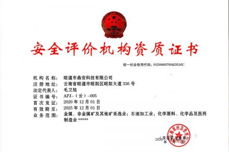 2003年11月10日,昭通市鼎安科技有限公司成立,初始主要從事第三方安全工程技術(shù)服務(wù),經(jīng)多年運營,發(fā)展為多專業(yè)綜合科技平臺,為社會提供多種專業(yè)技術(shù)服務(wù)工作。 現(xiàn)公司注冊資金為1200萬元,公司法定代表人:毛衛(wèi)旭。公司主要業(yè)務(wù):安全評價、安全標(biāo)準(zhǔn)化評審、安全工程技術(shù)服務(wù);環(huán)境監(jiān)測、職業(yè)衛(wèi)生檢測、檢驗;法律訴訟及非訴訟服務(wù);司法鑒定、固定資產(chǎn)投資項目節(jié)能服務(wù);工程咨詢;工程測量測繪;安全教育培訓(xùn)等。是安全生產(chǎn)服務(wù)、安全教育培訓(xùn)機構(gòu),也是環(huán)境監(jiān)測和職業(yè)衛(wèi)生服務(wù)機構(gòu),同時也是綜合的檢測檢驗、綜合科技平臺服務(wù)機構(gòu)。多年來為公、檢、法、司、軍、警、海關(guān)、仲裁、安監(jiān)、工礦商貿(mào)企業(yè)、社會團體及個人提供多專業(yè)技術(shù)服務(wù)。
